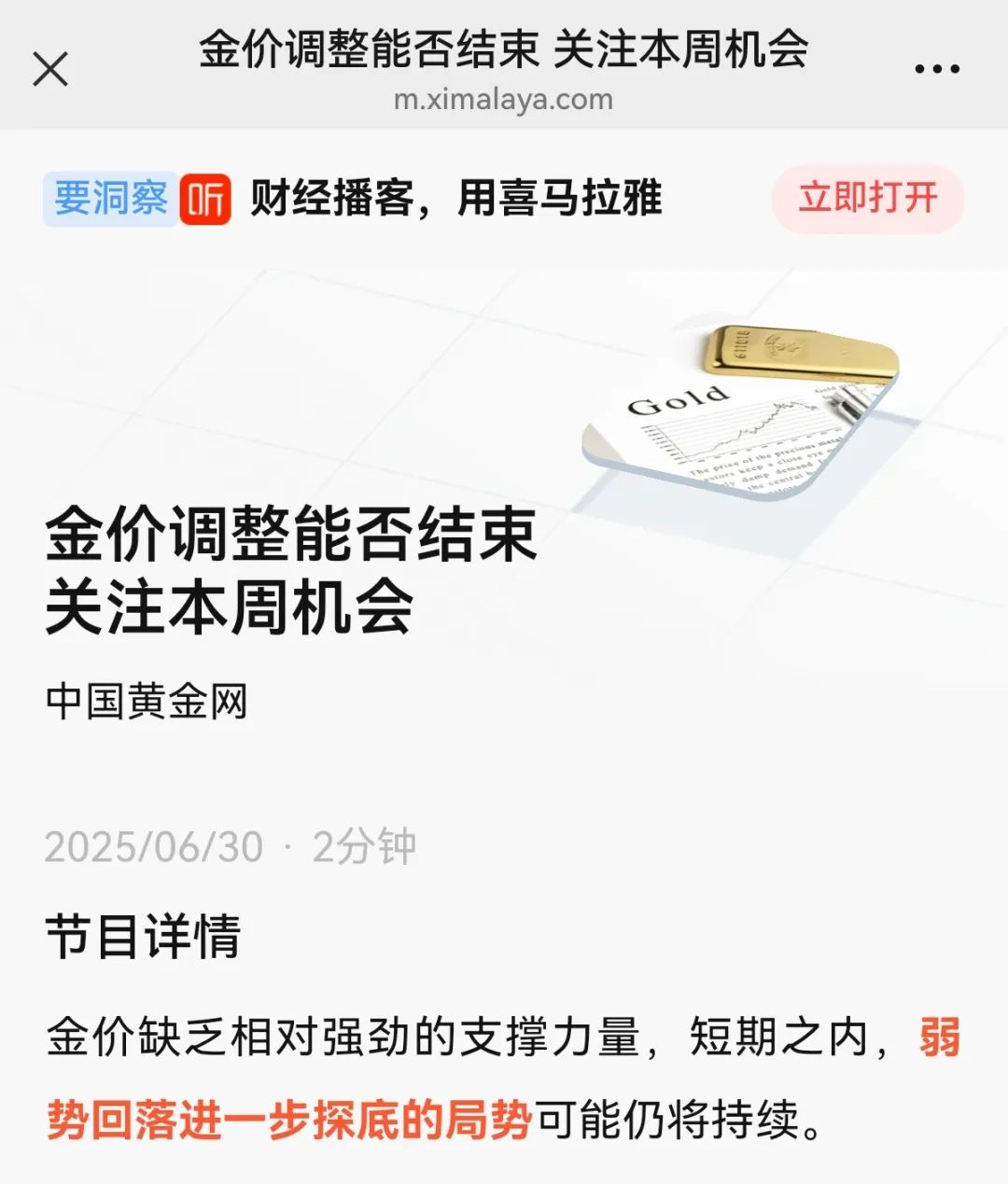 以色列伊朗冲突12天之后走向暂停,这12天之中只有前3天国际金价上升,之后都是下滑。目前看国际金价在短期降息无望的情况下继续惯性下滑的可能性较大。