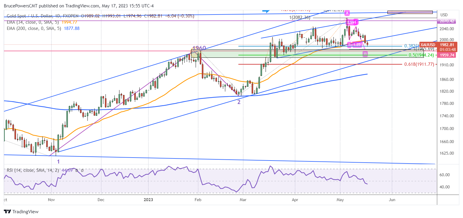 尽管如此,反弹回到上升盘整通道将表明可能会继续走强。34天EMA可用作通道下边界的代理。“你可以看到周四较低的通道线和34天线如何收敛,以确定大约1995美元的相同价格。”