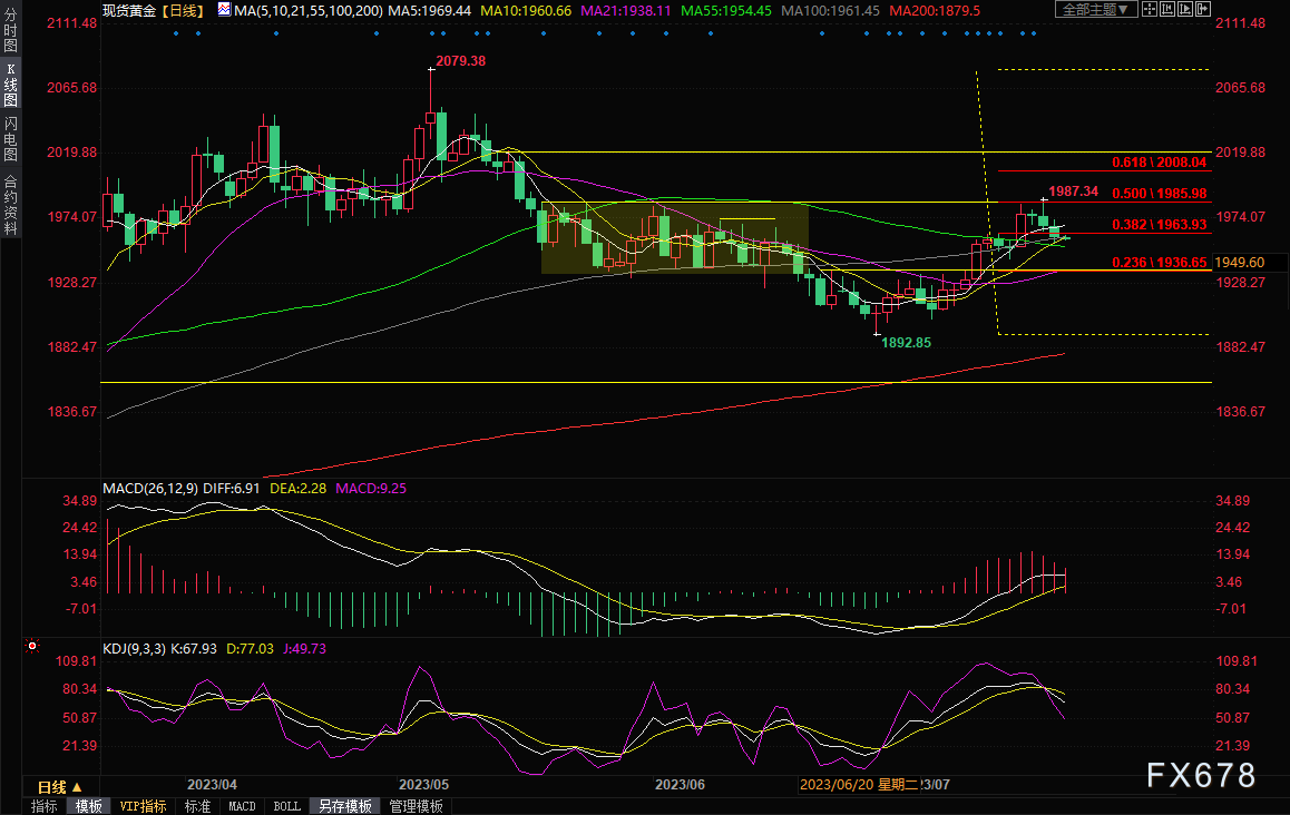 财经APP讯——周一(7月24日)亚洲时段,现货黄金窄幅震荡,目前交投于1961.20美元/盎司附近;上周五金价下跌,为日线连续三个交易日下跌,因美国就业数据向好,打压了美联储接近结束加息周期的预期,美元指数持续反弹至逾一周高位,对金价压制明显。目前金价正考验100日均线附近和1960关口的双重支撑,若失守该关键位置,将增加金价大幅下跌的风险。本周将迎来一个超级周,央行方面,将迎来美联储利率决议、欧洲央行利率决议和日本央行利率决议,数据方面,将迎来美国二季度GDP数据、美国6月耐用品订单数据、美国6月份PCE数据,投资者需要提前做好风险规避安排。