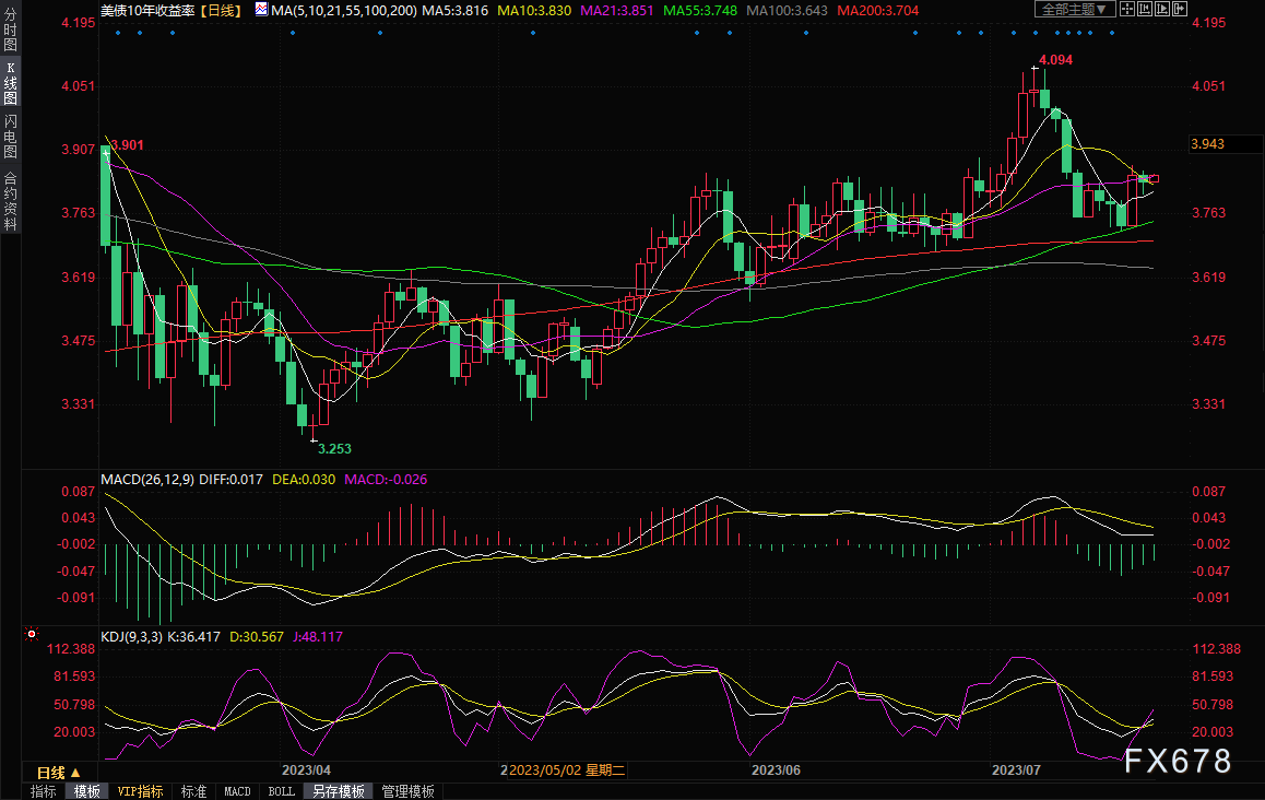 10年期国债收益率上周五下跌1.1个基点,至3.842%。与此同时,对利率敏感的两年期国债收益率上周五上涨1.1个基点,至4.850%。