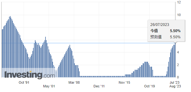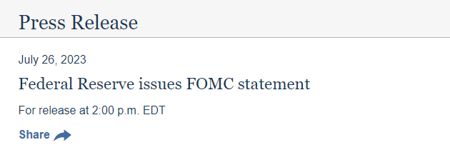 这是美联储自去年启动本轮加息进程以来的第11次加息,累计幅度达到了525个基点。但需要指出的是,该行连续加息的步伐已经在上个月终结,因为这家美国央行在上一次会议(6月14日)宣布维持联邦基金利率目标区间不变。