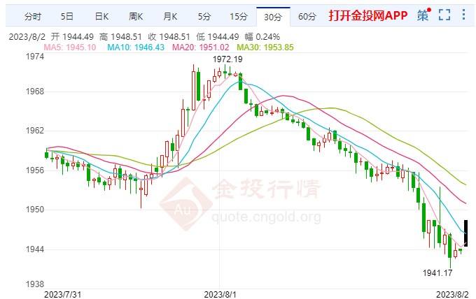 8月2日(周三),黄金盘内保持窄幅慢涨,金价1940-1950美元/盎司区间内持续上行行情。北京时间11:02,黄金暂报1947.20美元/盎司。