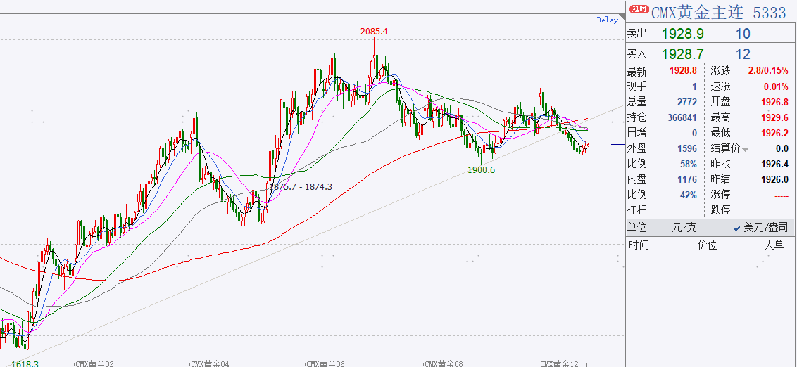 截止8月22日收盘,COMEX黄金12月合约亚市收盘于1926.4美元/盎司,涨幅0.18%,成交126226手,持仓366841手;COMEX白银12月合约亚市收盘于23.79美元/盎司,涨幅0.55%,成交18264手,持仓81909手。