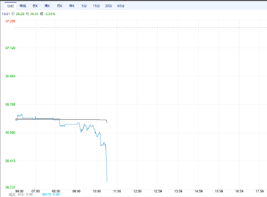 纽约期银日内跌超2.00%,现报36.17美元/盎司。现货白银日内下跌0.6%,报36.16美元/盎司。