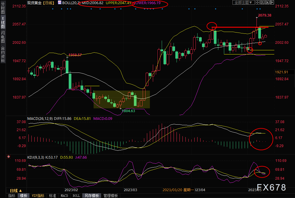 不过,在跌破布林线中轨2006.79前,金价后市仍有震荡走高的机会,初步阻力在5日均线2030.33附近,然后是2040关口,布林线上轨阻力在2047.36附近,4月13日高点阻力也在该位置附近,如果顶破该阻力,则增加后市看涨信号。