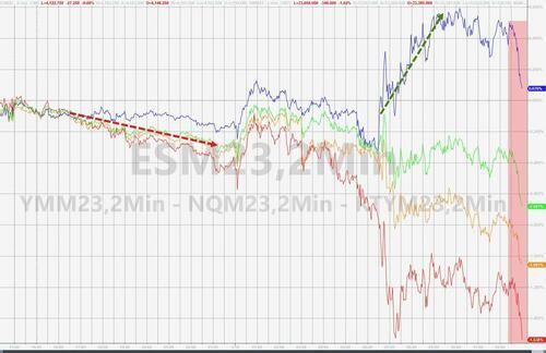 高盛CEO等140多位美国商界领袖敦促政府与国会火速解决债务僵局,拜登亚洲之行被迫缩短,美股尾盘跌幅扩大至日低,纳指重新转跌。