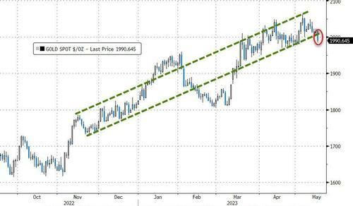 现货黄金最深跌超30美元或跌1.5%,跌穿2000美元整数位心理关口,并失守1990美元,接近抹去两周内全部涨幅。昨日现货黄金曾止步三日连跌并上逼2020美元。