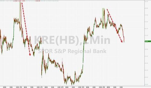 “美国四大行”齐跌约1%,高盛跌0.4%,资管巨头嘉信理财跌1.7%。地区银行中,昨日涨超17%的西太平洋合众银行(PacWest Bancorp)跌超14%,昨日涨12%的阿莱恩斯西部银行(Western Alliance Bancorp)再涨近3%至5月1日来最高,US Bancorp跌超3%,Capital One一度涨6%。