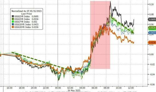 30年期长债收益率一度升6个基点至3.90%,创3月9日以来的两个月新高,即美国银行业暴雷以来新高。3个月/30年期收益率利差重新跌向历史最低位。20年期收益率上逼4%。