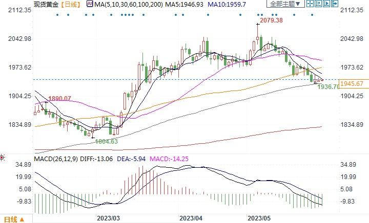 财经APP讯——由于市场预期6月美联储将再次加息,且债务上限协议即将在国会表决,金价在每盎司1950美元下方稍作休整。在经历了一个多事的周末之后,现货黄金周一走势平稳,最后交易价为每盎司1946.50美元。