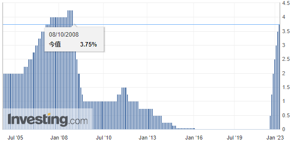 自去年7月以来,欧洲央行已连续7次上调关键利率,累计加息幅度达到了375个基点,3.75%的主要再融资利率也成为了2008年10月以来的最高水平。