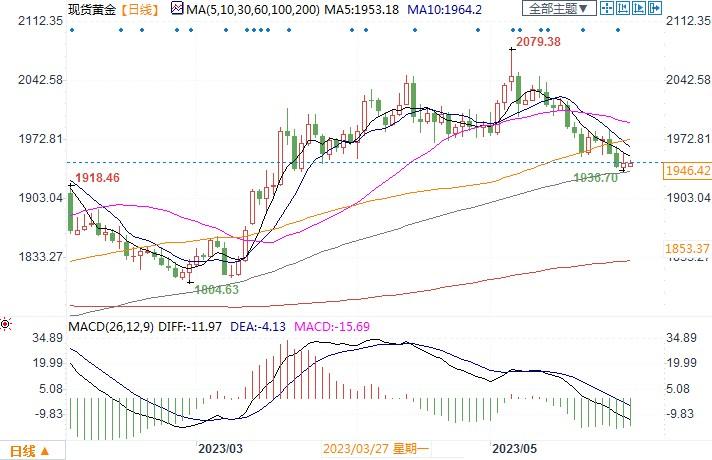 现货黄金日线图北京时间5月29日14:52,现货黄金报1946.94美元/盎司