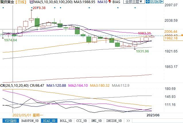 现货黄金日线图北京时间6月2日11:54,现货黄金报1982.50美元/盎司
