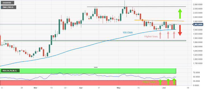 Panchal指出,从黄金日线图来看,金价保持在三周前的交易区间内,包括100日移动均线支撑位和自5月18日以来的小幅下行趋势线,分别接近1940美元/盎司和1985美元/盎司。